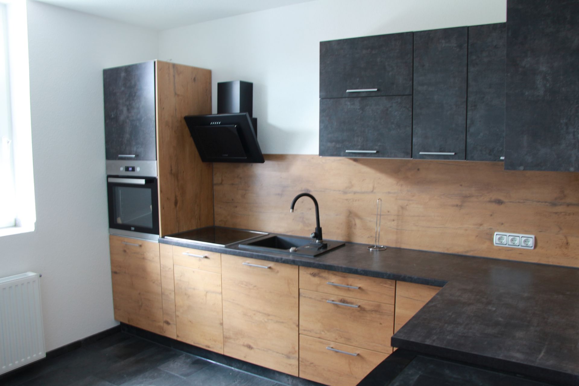 - komplette Einbauküche mit Kochuntensilien