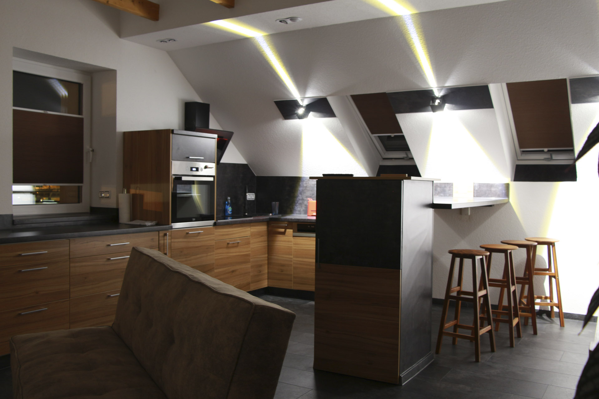Unsere "Suite" mit 3 seperaten Schlafräumen bietet Ihnen zusätzlich puren Luxus. Der große, zentrale Longebereich mit offener Küche lädt Sie und Ihre Freunde / Kollegen ein, gemütlich zusammen zu sitzen.